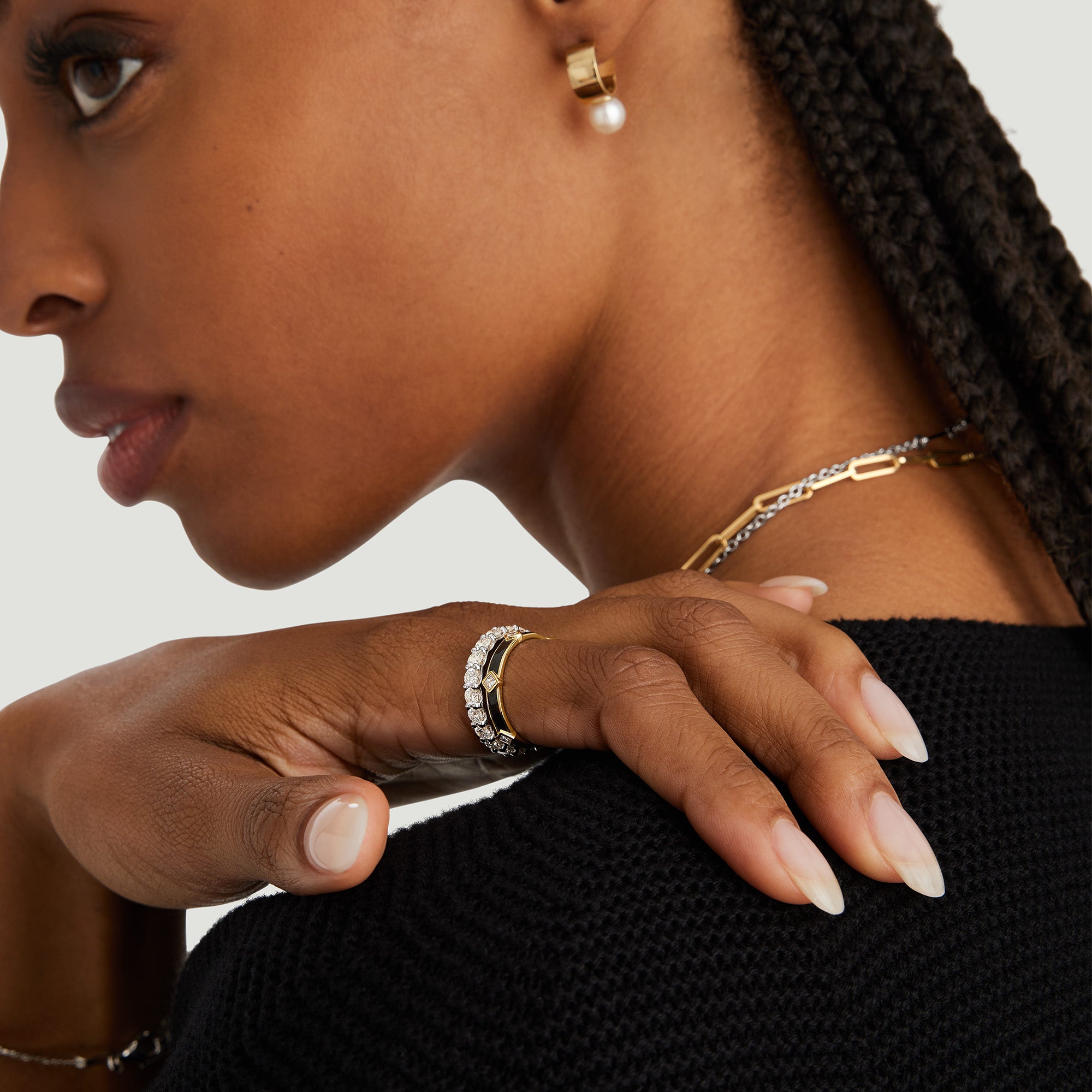 Finding a ring you’ll love for a lifetime is something to celebrate. Here it is: a bold ring handcrafted in 14k solid gold featuring as many as 22 round brilliant cut diamonds. Each diamond is hand-set in a basket of open prongs to enhance the sparkle.