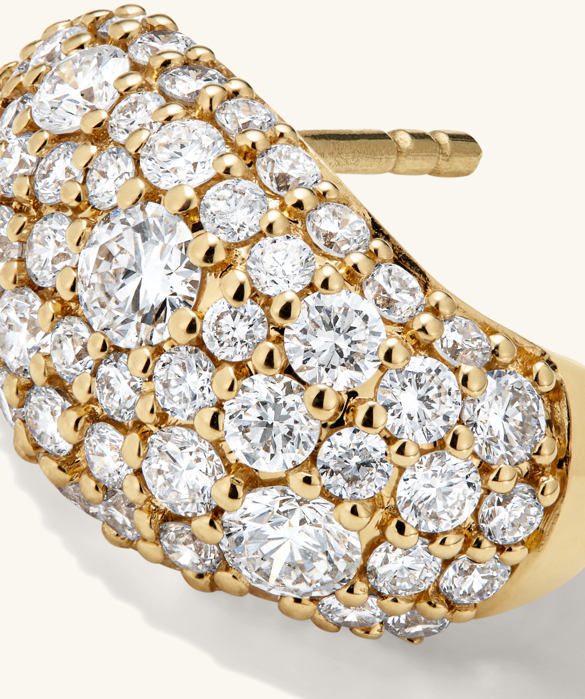 Eye-catching, stand-out huggies from our best selling Dôme Collection make every look special. The cobblestone setting used here is known for its density of lab grown diamonds— using different sized stones to create an expanse of smooth, unbroken shine.