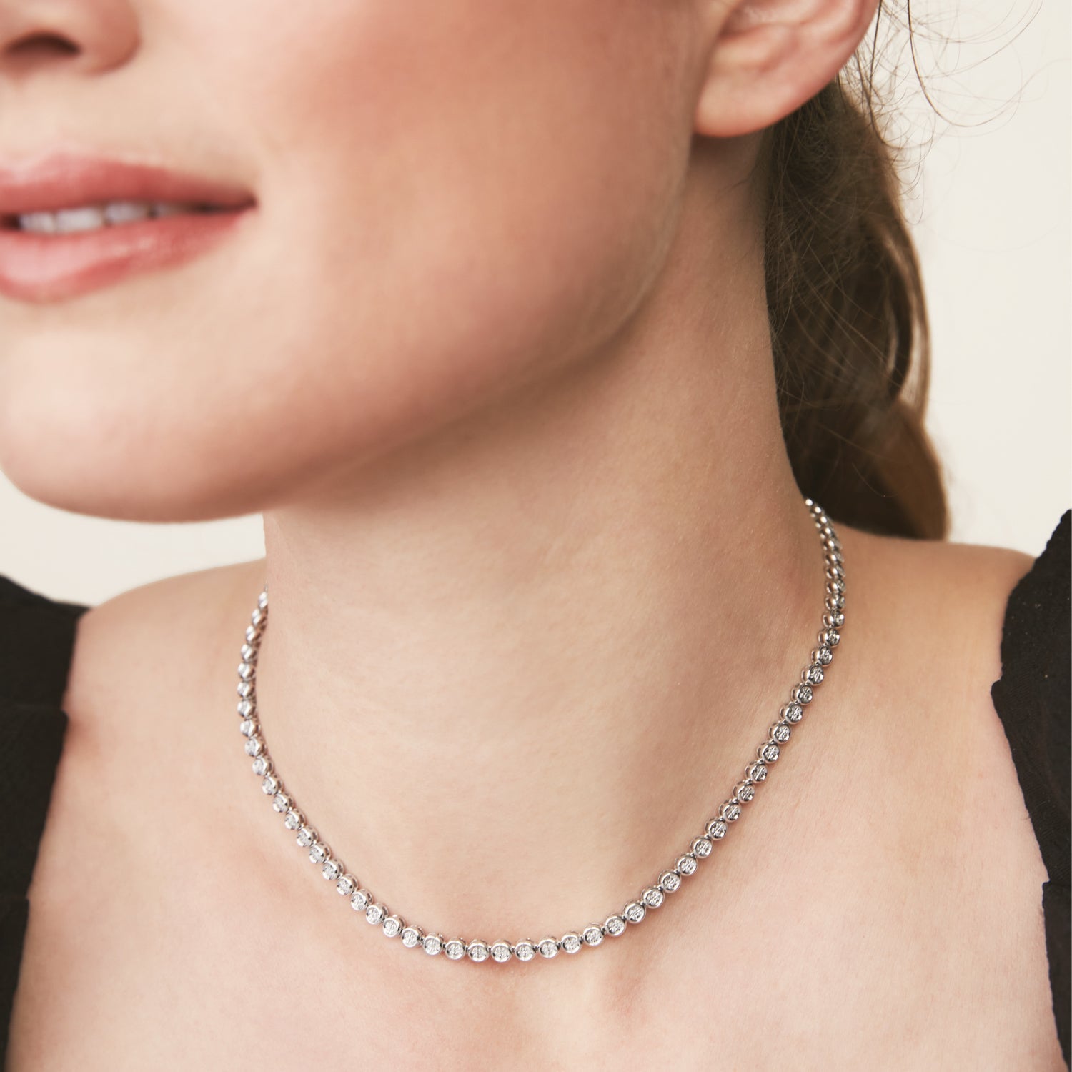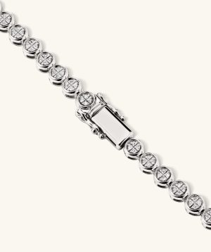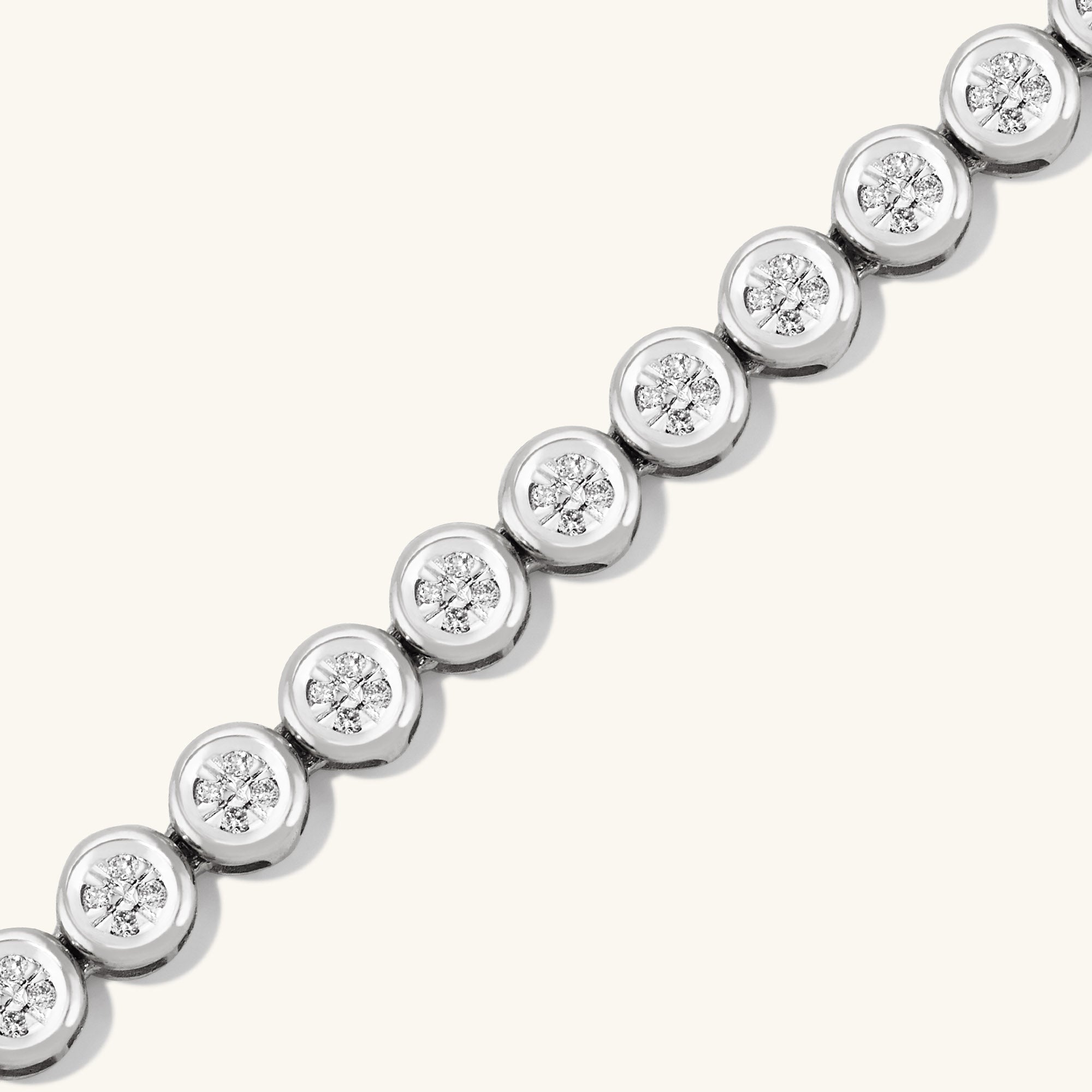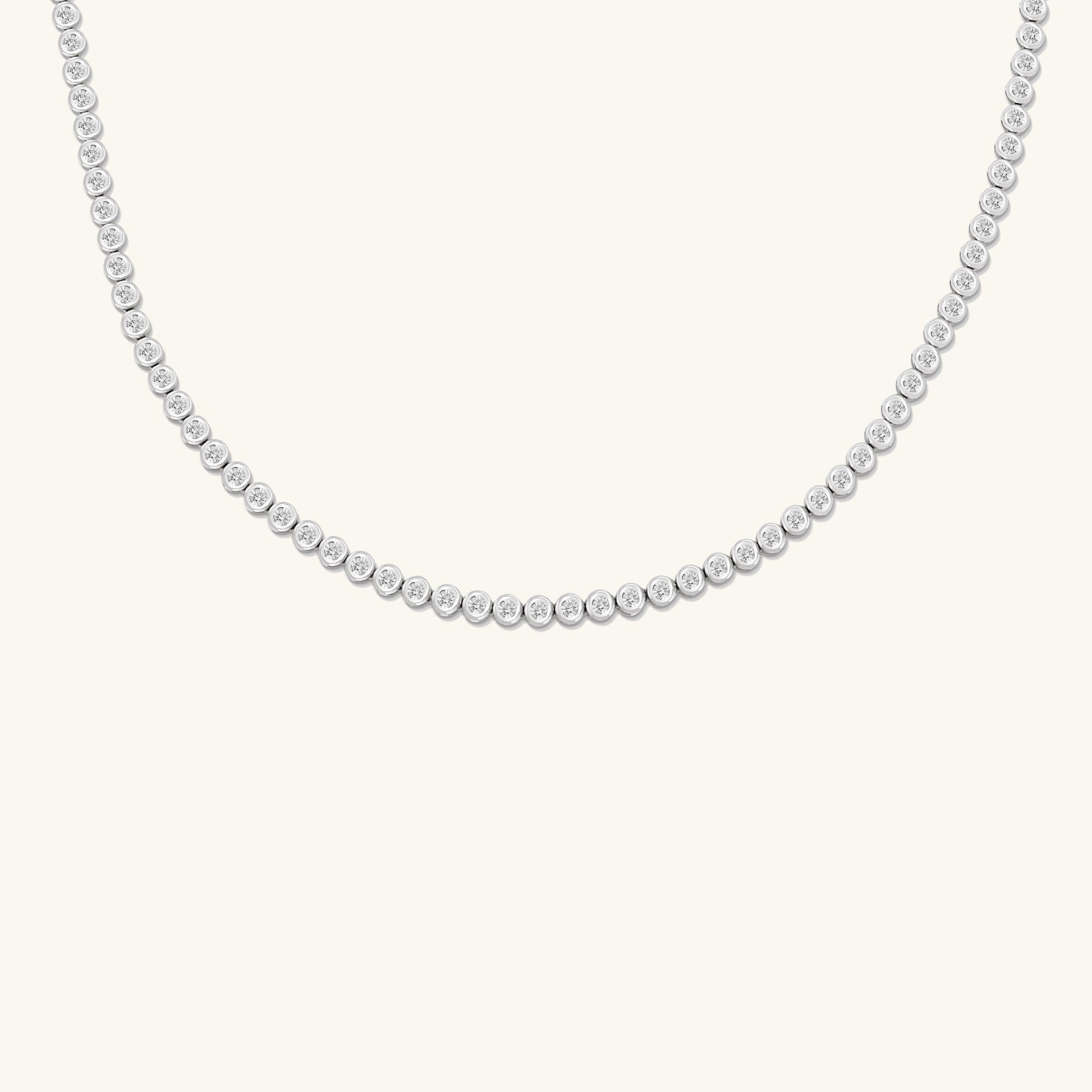 When the occasion calls for a grand entrance, the Rivière edition is here for every milestone. Handcrafted in 14k solid gold featuring as many as 412 diamonds, with an average total carat weight of 1.05 or 1.25 that are knife edge bezel set to create a continuous stream of shine. Each micro-pavé diamond is hand-set by our master jewelers.